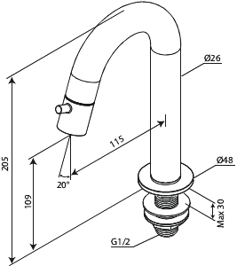 Lumi Standventil C-Auslauf medium messing gebürstet