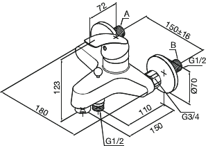 Wannenfüll- u. Brausearmatur chrom