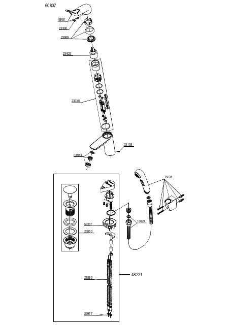 Waschtischarmatur mit separater Handbrause chrom/schwarz